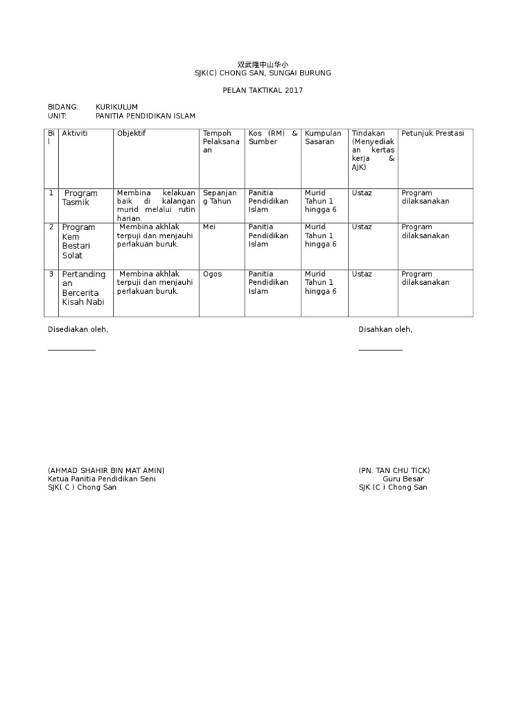 Lembaga pendidikan merupakan hal yang sangat penting dalam mencapai keberhasilan proses pendidikan karena lembaga berfungsi sebagai mediator dalam mengatur jalannya pendidikan. Pelan taktikal pendidikan islam 2017. Pendidikan islam sekolah rendah view more. Konsep pendidikan islam ialah konsep pendidikan rabbani yang bersumberkan bimbingan ilahi. Pengurusan panitia dan pelan strategik pendidikan islam pada 8 ogos 2009 di sjk(c) chong san, sungai burung pelan taktikal 2017 bidang:
