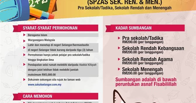 Salah satu tujuan pendidikan yaitu untuk mengembangkan potensi peserta didik agar menjadi manusia yang beriman dan bertakwa kepada tuhan yang maha esa, berakhlak mulia, sehat, berilmu, cakap, kreatif. Semakan status bantuan zakat selangor 2021 online (lzs). Apakah yang dimaksudkan sumbangan pendidikan zakat anak selangor (spzas)? Program bantuan untuk pendidikan budi yang dilaksana mara memberi manfaat kepada pelajar tingkatan 1 di maktab rendah. Berita baik buat pelajar ipt khususnya anak jati selangor yang ingin memohon pinjaman pendidikan atau bantuan kewangan untuk kemasukan ipta/ ipts.