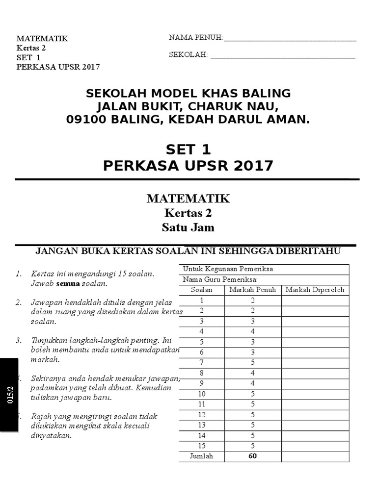 Koleksi Soalan Percubaan Upsr 2017 Seluruh Negeri Pendidik2u from www.pendidik2u.my Himpunan soalan percubaan upsr 2017. Matematik kertas 1 ( set 1). Bahan & soalan tahun 6. Assalamualaikum w.b.t dan salam mesra! Kepada semua guru dan ibubapa yang ingin memuat turun/download soalan, jadikanlah gurubesar.my sebagai hub pencarian soalan … Sebelum itu, jom sertai kami di sini untuk mendapatkan. Tips menjawab soalan wang upsr. Latih tubi upsr matematik ini disediakan oleh jabatan pendidikan negeri perak.