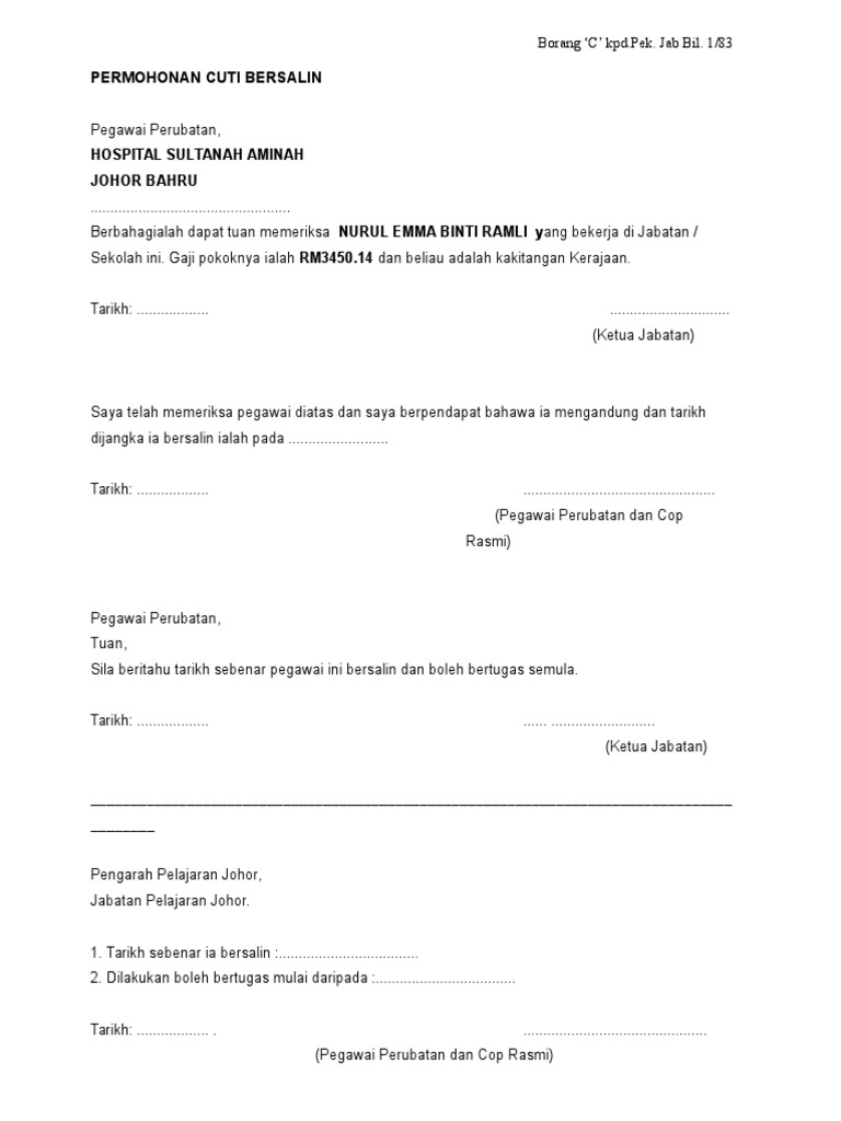 Untuk mendapatkan cuti bersalin, pns yang bersangkutan harus mengajukan permintaan secara tertulis kepada pejabat yang berwenang memberikan cuti. You have just read the article entitled borang cuti tanpa rekod isteri bersalin. Cuti, party, maternity, parental leave, change clothes, maternity leave. Cuti suami untuk isteri bersalin 2020. Leave a reply cancel reply.