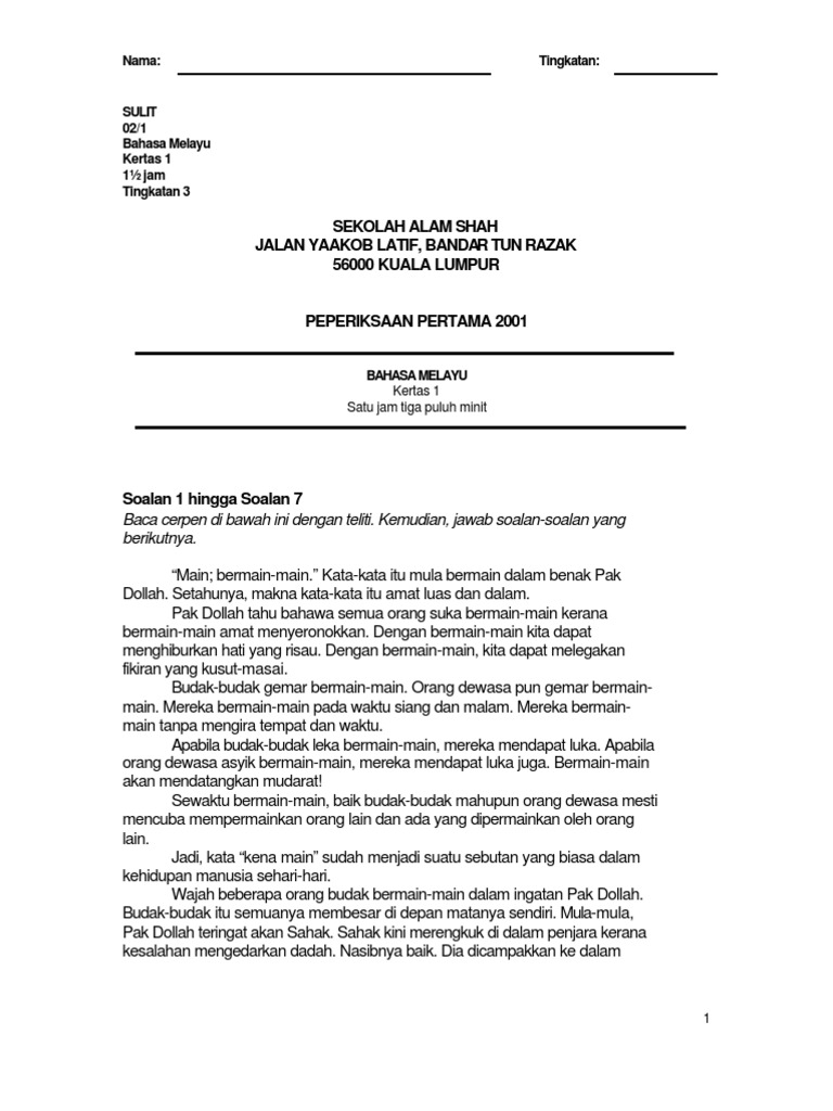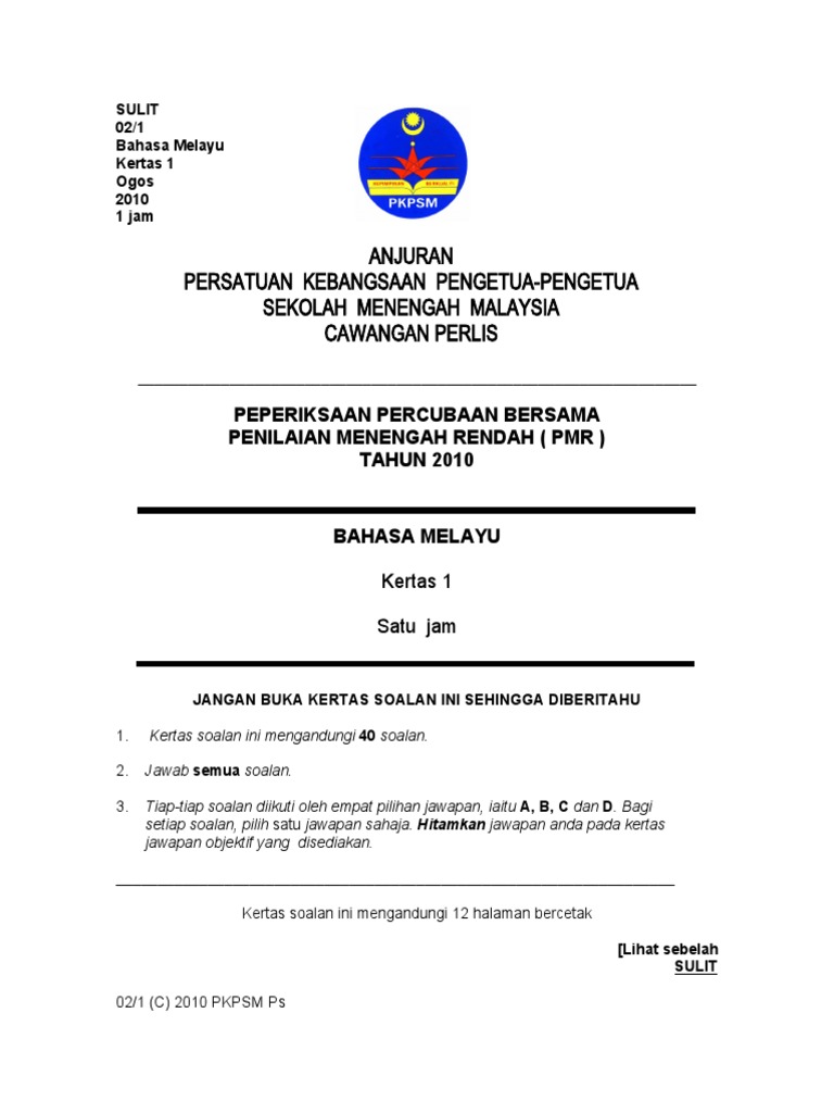 Soalan Pmr Bahasa Melayu Kertas 1 / Bahasa Inggeris K1 Trial Pmr 2013 : Kertas soalan tamat learning to score unit kurikulum jabatan pelajaran perak halaman 10.